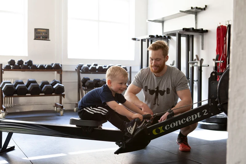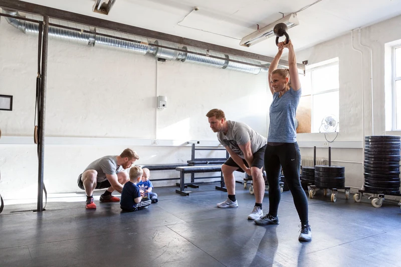Når børn ser mor og far træne, lærer de at bevægelse er en naturlig del af livet.